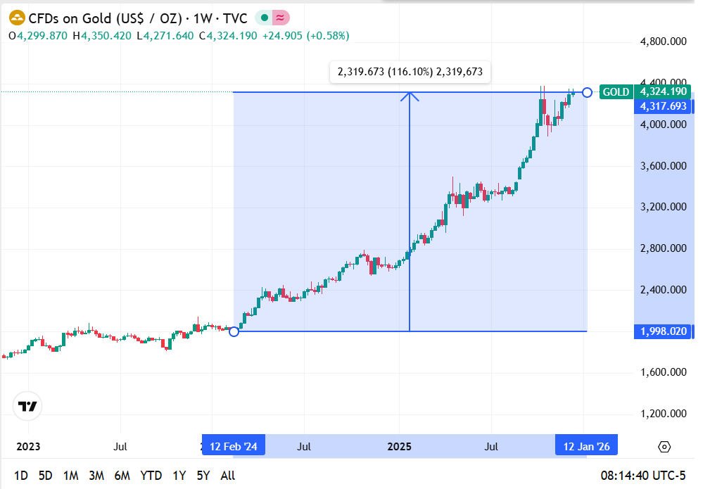 Nello stesso periodo, l’oro è cresciuto “solo” del 116%.