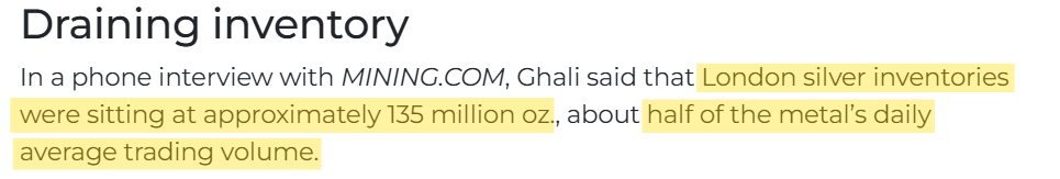 La London Bullion Market Association (LBMA) è stata costretta a rivelare che le scorte “libere” nei propri caveau sono scese a 135 milioni di once, cioè la metà del volume medio giornaliero scambiato.