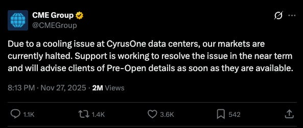 Due settimane fa, il Chicago Mercantile Exchange (CME) ha subito un’interruzione di 10 ore.