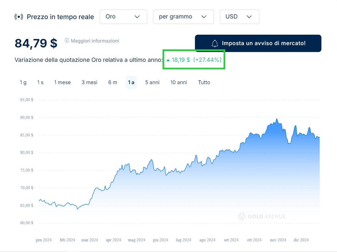 Apprezzamento nominale dell’oro.