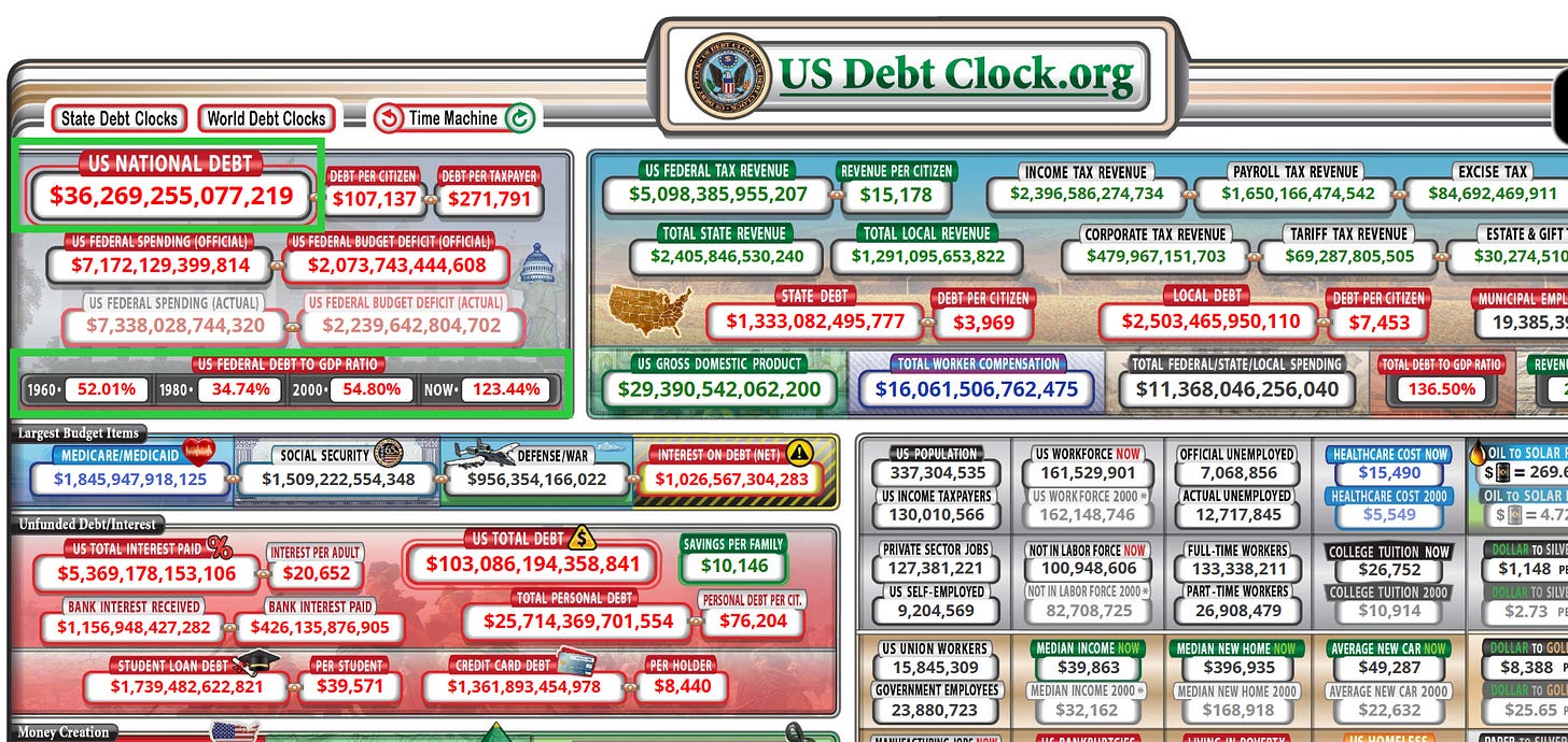 36 trilioni di dollari di debito pubblico (come visibile nella foto qui sotto).