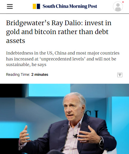 Anche Ray Dalio, fondatore di Bridgewater Associates, uno dei più grandi fondi di investimento al mondo, ha espresso preoccupazioni per una possibile crisi legata al “debito monetario” globale, causata da livelli di indebitamento insostenibili in Paesi come Stati Uniti e Cina. Durante una conferenza ad Abu Dhabi, ha suggerito di evitare gli asset di debito, come obbligazioni, e di investire invece in “denaro solido” come oro e Bitcoin.