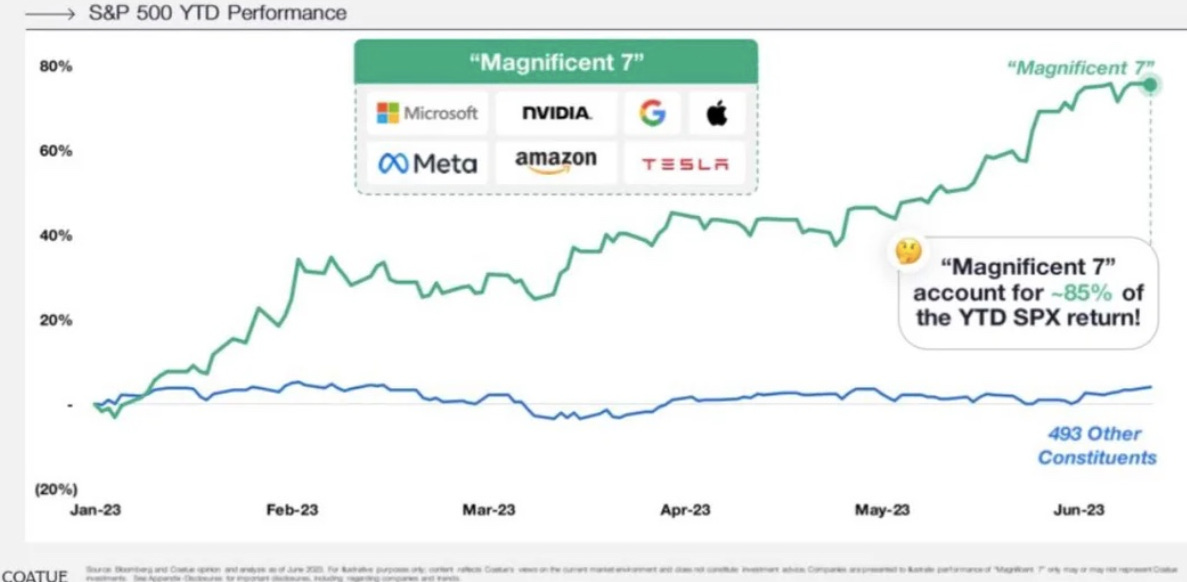Sto parlando delle magnifiche 7, cioè le sette più grandi aziende tech: Microsoft, Apple, Google, Meta, Tesla, NVIDIA, Amazon.